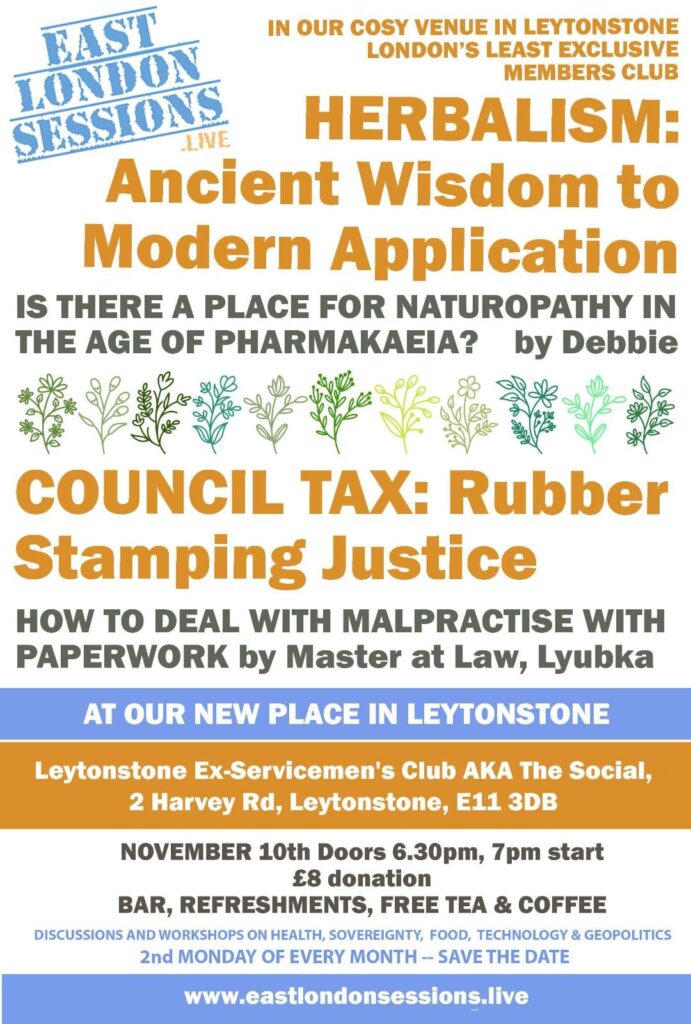 Nov 10 2025 – herbalism: ancient wisdom to modern application & council tax: rubber stamping justice