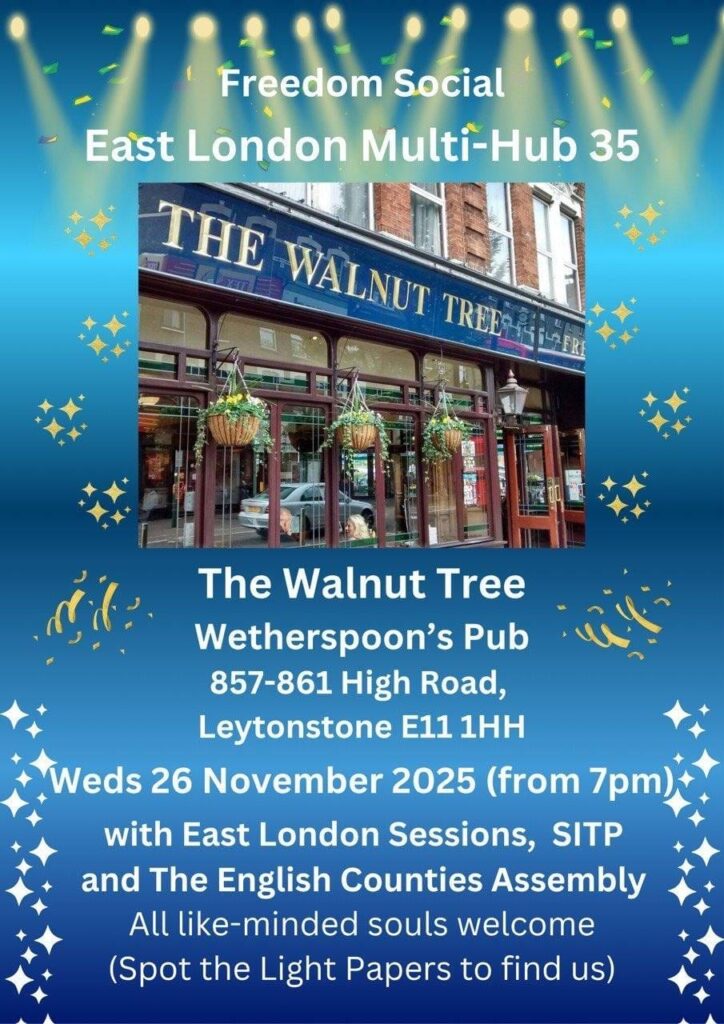 MONTHLY SOCIAL: On fourth Wednesdays and takes place at The Walnut Tree, Leytonstone High Road, from 7pm
